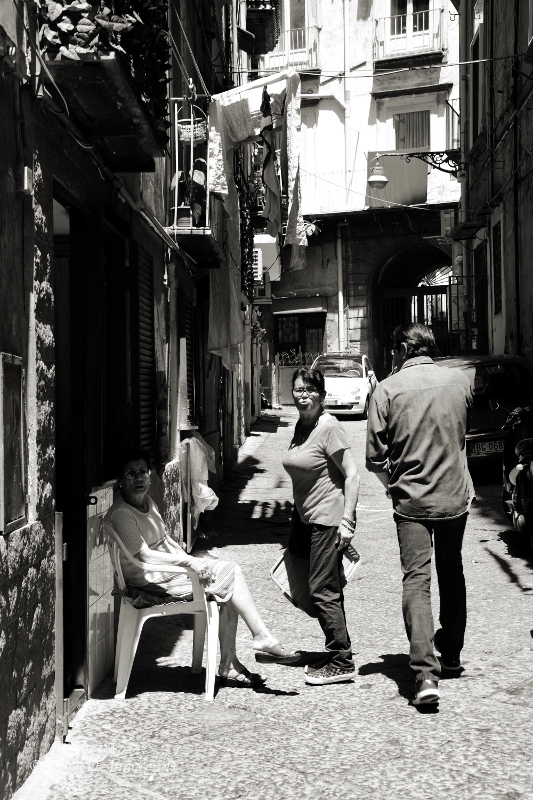 Un sapore antico fatto di storie centenarie qui lo si coglie appieno, ma, al tempo stesso, questi racconti si intrecciano nel presente e nelle mutazioni della città con la crescita costante di nuovi abitanti provenienti da terre “luntane assaje” e turisti stranieri che si perdono lungo la salita della strada. Sono orgoglioso. Qui Napoli respira ancora quelle sue atmosfere che la contraddistinguono e contemporaneamente i vicoli e i gradini di questa arteria assaporano quel vento internazionale che solo la contemporaneità di questo momento storico molto complesso può regalare.